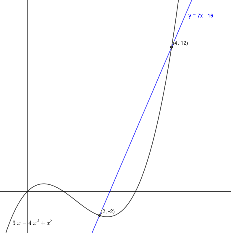 $$ x(4) = 3(4) - 4(4)^2 + (4)^3= 12\ut{m} $$